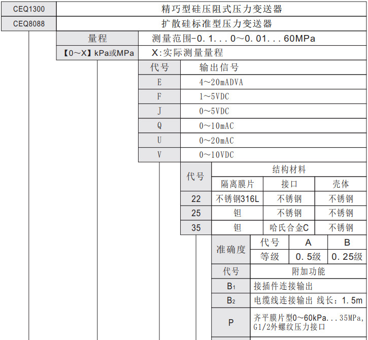 四.CEQ1300精巧型硅壓阻式壓力變送器技術(shù)性能參數(shù)指標(biāo)