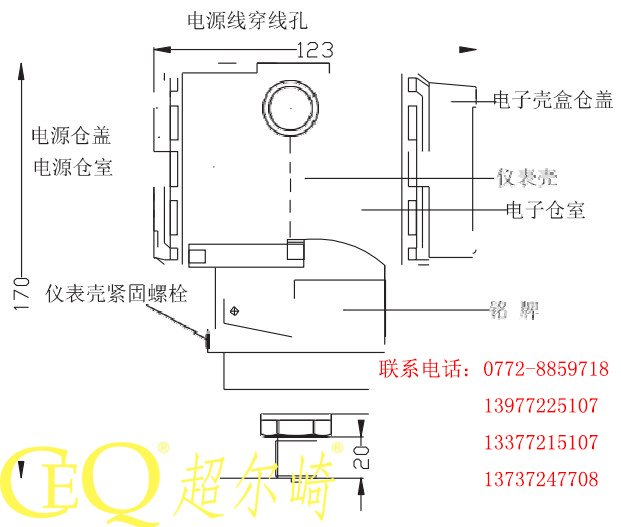 儀表殼上的穿線孔,用密封塞(螺栓為 M20*1.5)密封,以避免儀表殼的電源倉(cāng)室內(nèi)潮氣積聚。如果電源線穿線孔不密封,應(yīng)使穿線孔朝下,以便排出液體。